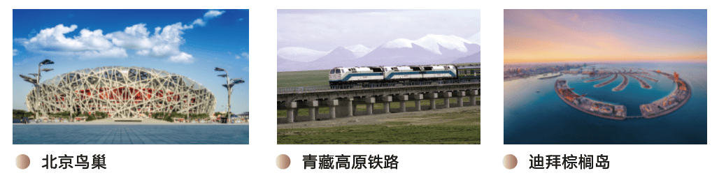 中铁不仅修建了新中国绝大多数的铁路和城市地铁,像我们熟知的鸟巢、青藏铁路都是中铁的作品,被誉为世界八大奇迹的“阿联酋迪拜棕相岛”也由中铁缔造