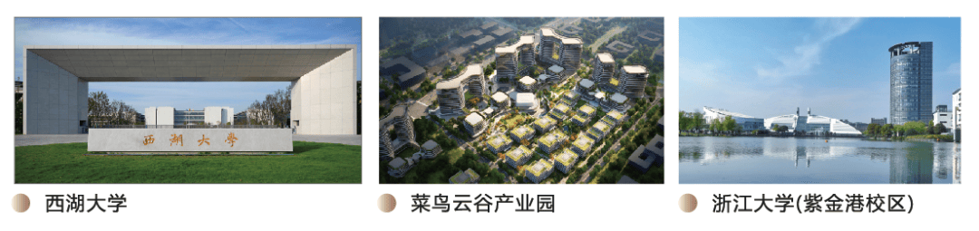云谷学校,西湖大学云谷校区,浙江大学紫金港校区,育华学校,从幼儿园到小学、中学甚至大学一应俱全,区域书香文墨氛围异常浓郁