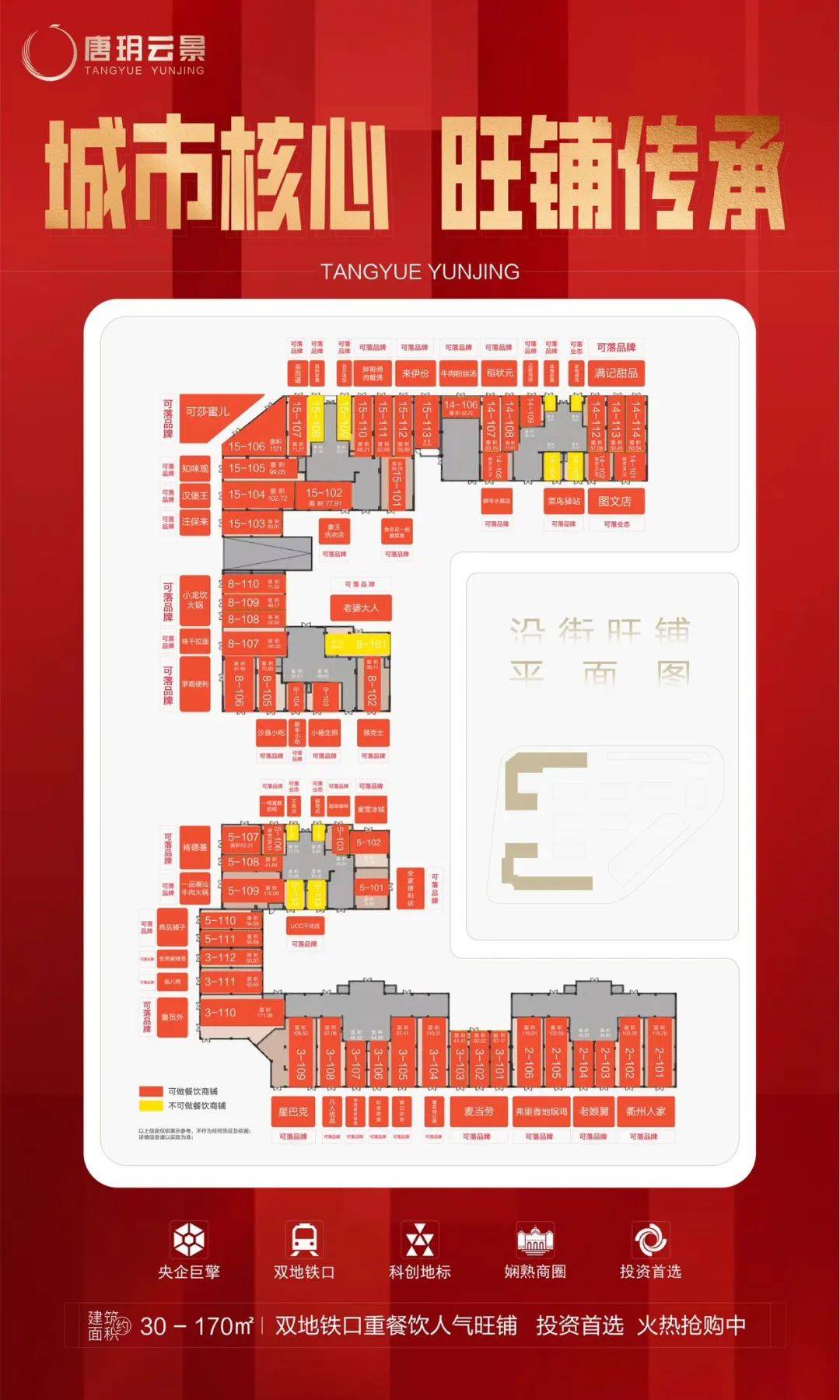 ⭐商铺:单间建筑面积约9m² -100m²地铁口人气潮铺(户户可做餐饮)
